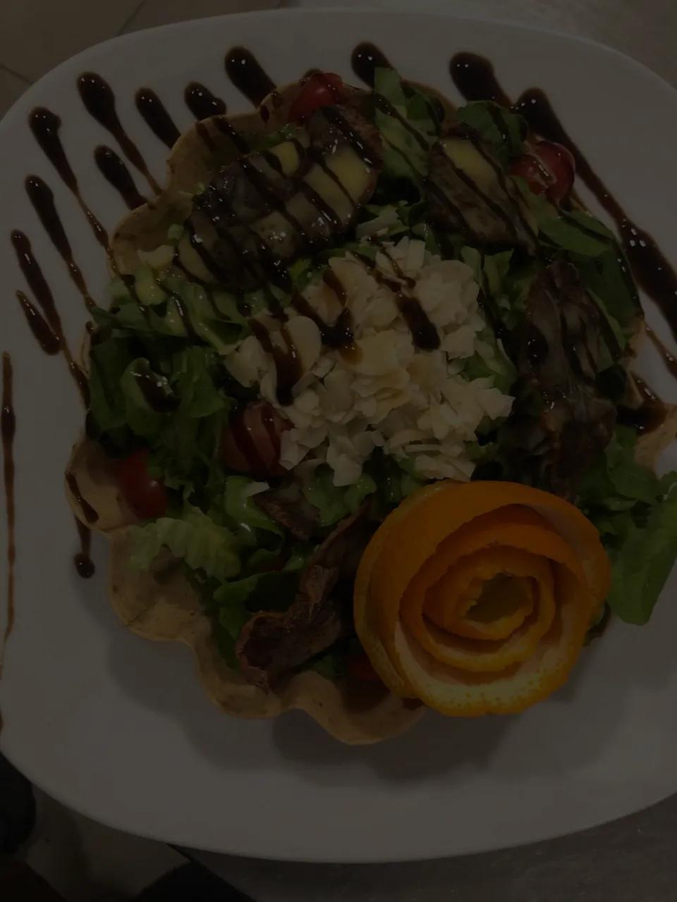 13,00€Μοσχαρίσια ελιά , πιπεριές φλωρίνης, σόγια sos, μέλη, σουσάμι.