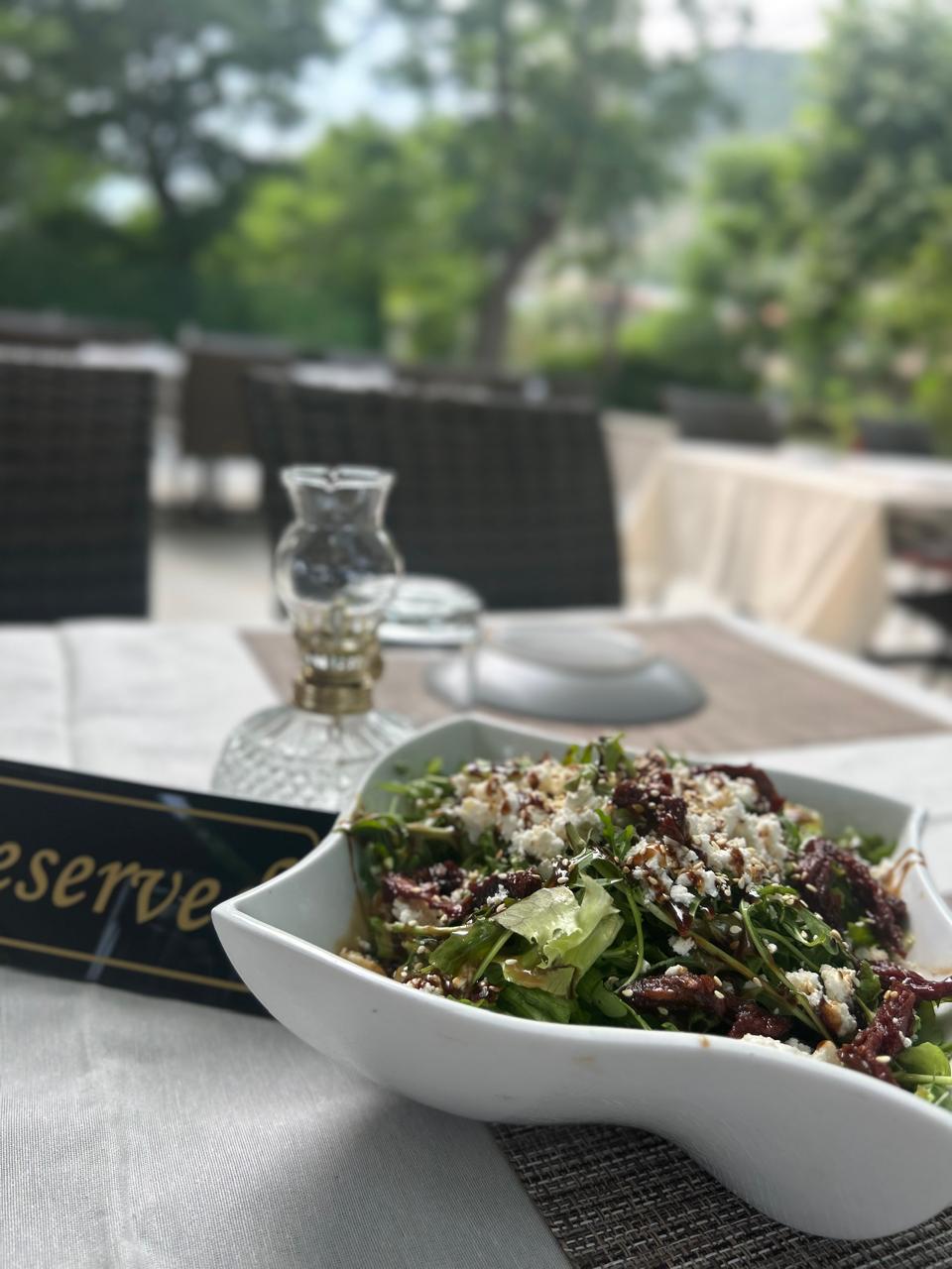 Ρόκα, μαρούλι, λιαστή ντομάτα, ανθότυρο, σως βαλσάμικο, σουσάμι καβουρδισμένο, κόκκινα φασόλια.